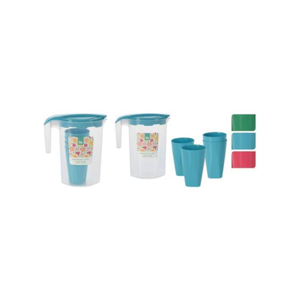 prozirni vrč zapremine 1750 ml, opremljen poklopcem i 4 odgovarajuće šalice. Idealno za kampiranje, roštilj, piknik ili (dječju) zabavu.