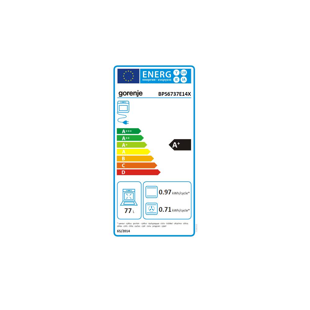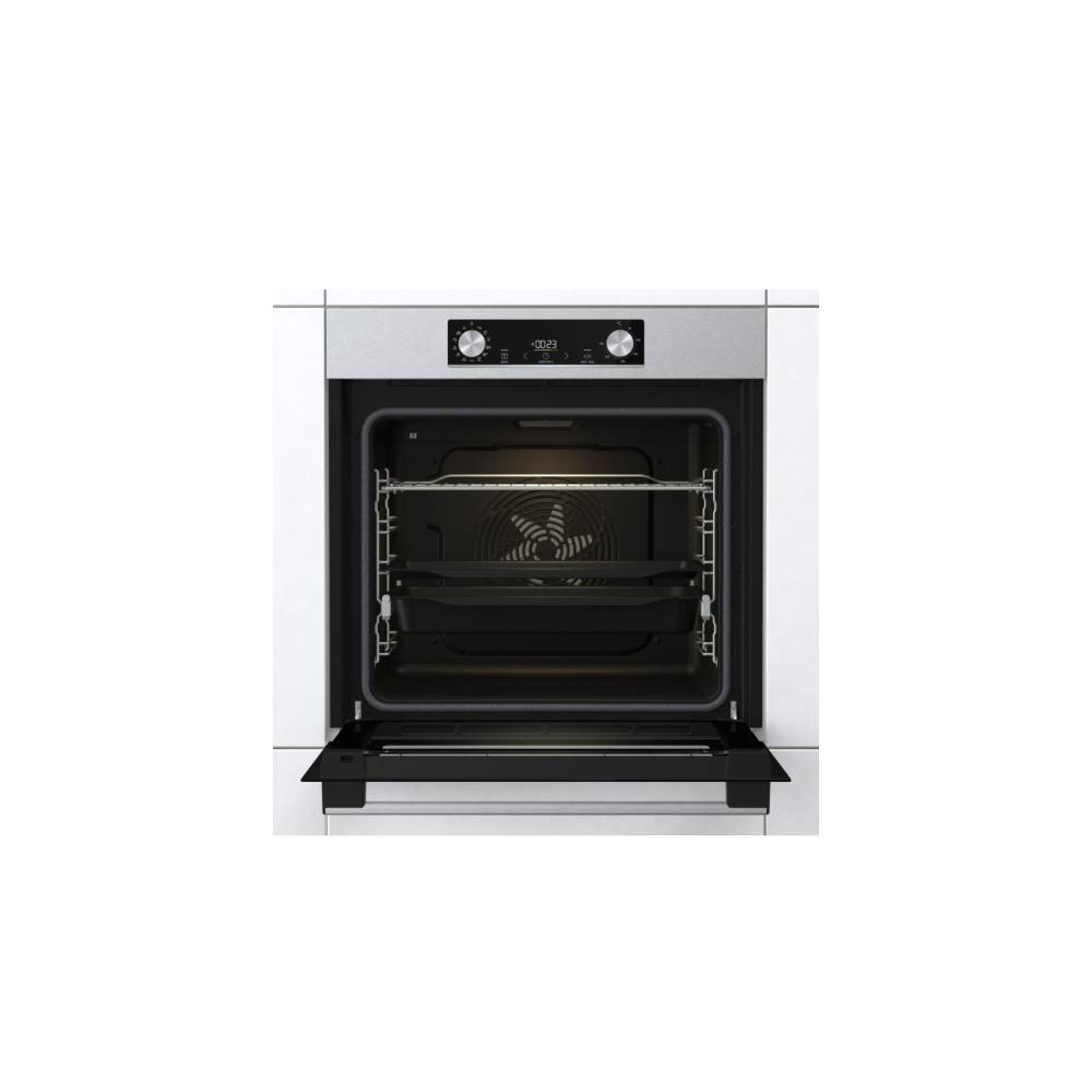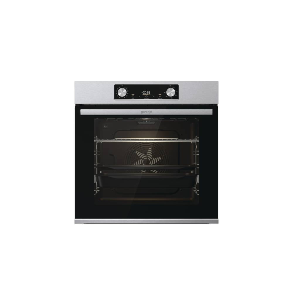 Kompaktna višesustavna pećnica renomirane marke Gorenje dimenzija 59,5 × 59,5 × 56,4 cm može se pohvaliti visokom kvalitetom i elegantnim dizajnom. Nudi 77 litara korisne zapremine i pripada energetskom razredu A +. Ima mehaničku kontrolu s uvlačivim tipkama i programski sat IconLed. Ponosi se sustavom mekog zatvaranja vrata GentleClose.