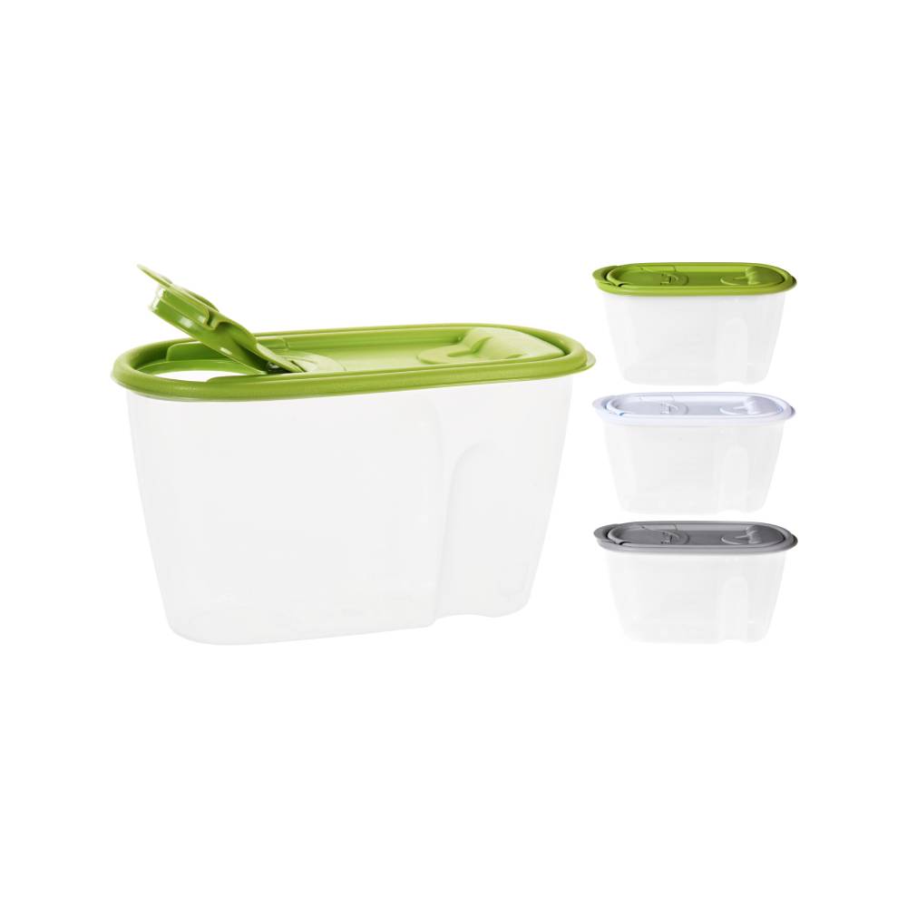 Spremnik sa zatvaračem za doziranje prikladan je za skladištenje npr. brašna, žitarica, mahunarki itd.