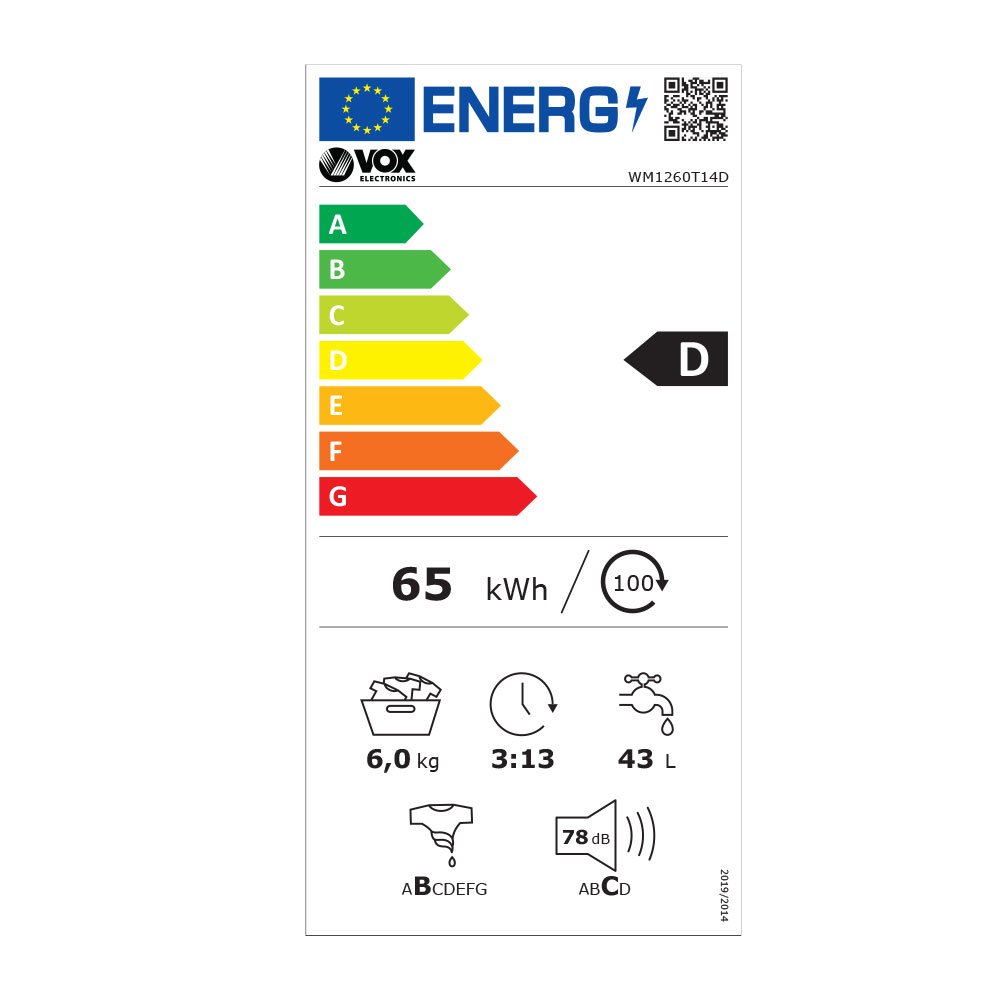 Broj obrtaja centrifuge 1200 rpm, Maksimalni kapacitet pranja 6 kg, Broj programa – 15,Dimenzije uređaja (VxŠxD) 845x597x497, Ukupna masa 56.6 kg