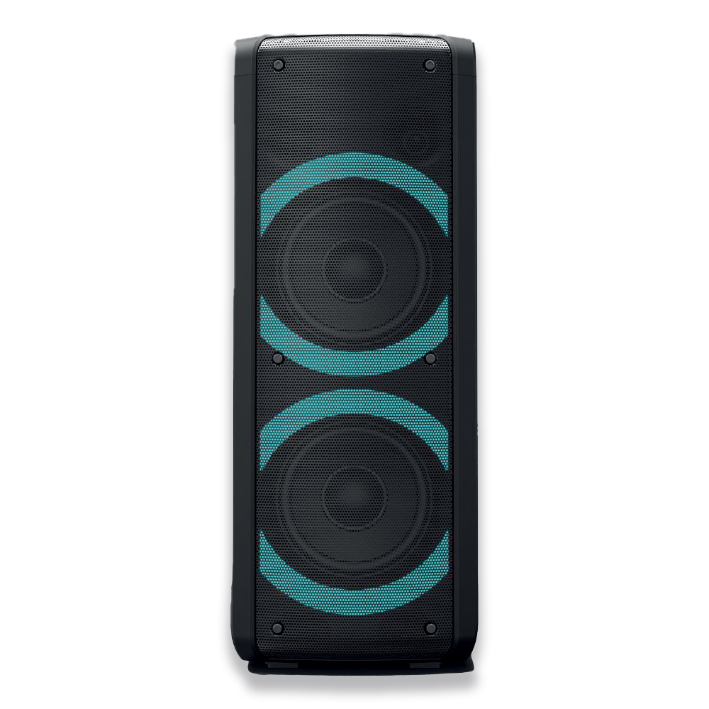 Snaga 300 W, s dva woofera promjera 6,5“. Kako bi party doživljaj bio potpun, uz zvučnik dolazi i žičani mikrofon te woofere okružuje LED svjetlo sa 7 različitih vrsta osvjetljenja.